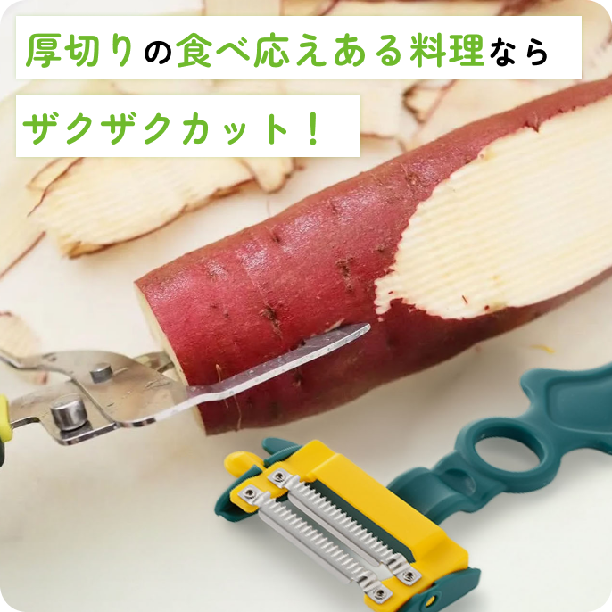 食材を最後まで皮剥きできるから、環境にも手にも優しい、安心の調理アイテムです。